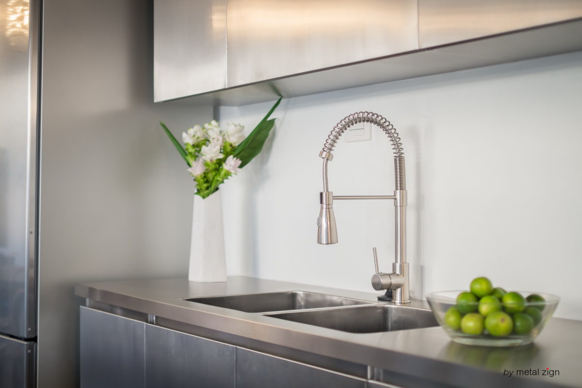 หลุม Sink ขนาดสองหลุม ไว้เ่ตรียม ล้าง การปรุงอาหาร รวมถึงภาชนะต่าง ๆ ได้เป็นอย่างดี รวมถึงการเลือกใช้ก๊อกแบบพิเศษ ทำให้การล้างสะดวกและสะอาด